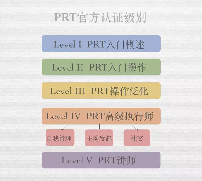 美国PRT官方考证分为五个阶段,需循序进行,不可跳级。
