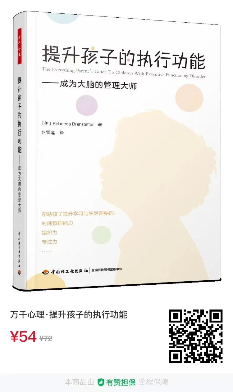 本书可以帮助家长检查和提升孩子的各项执行功能。通过阅读本书,家长不仅可以识别是哪项执行功能的不足导致孩子在学习或生活中遇到了麻烦,还可以通过书里提供的干预策略帮助孩子查漏补缺,改善学习和生活所需的策略与技能。甚至,不少家长反馈他们自己也能从书里获益。希望通过阅读和实践本书的内容,家长和孩子都能更加从容和自在地应对生活。