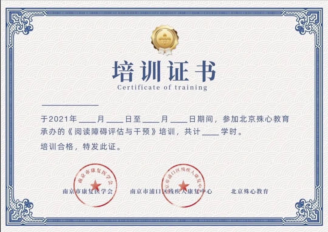 本次培训由南京市康复医学会儿童康复专业委员会和南京市浦口区残疾人康复中心联合发证